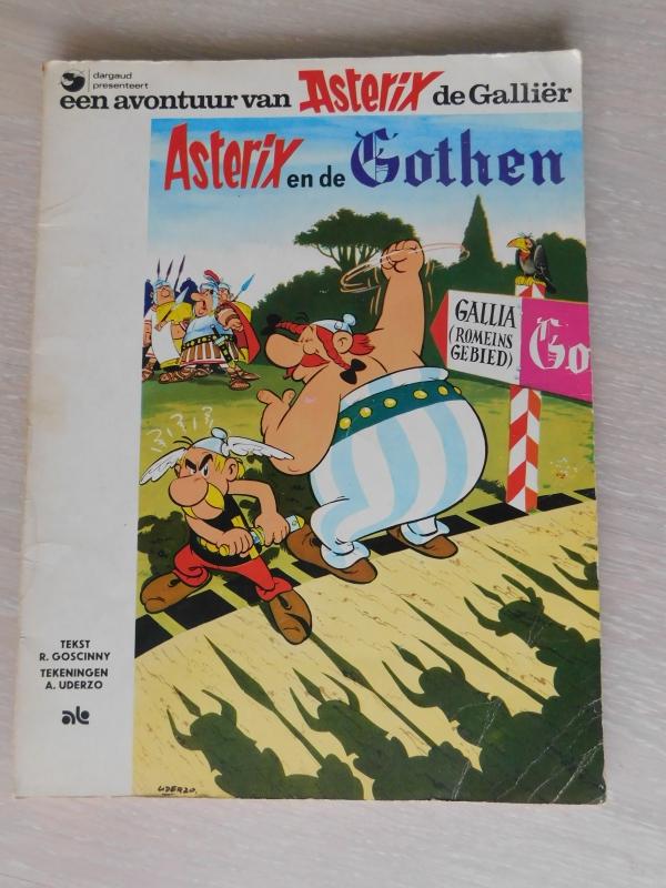 Stripboek Asterix en de Gothen, van Goscinny en Uderzo. Amsterdam Boek, 1973, 47 bladzijden. Lichte beschadiging aan onderzijde rug, verder in goede staat.